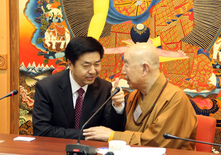 保定佛教转佛教在线讯 据《香港佛教联合会》消息,2010年10月9日上午,国家宗教事务局张乐斌副局长一行到访香港佛教联合会,香港佛教联合会会长觉光长老,副会长黎时暖居士、林汉强居士,总务主任智慧长老,常务董事绍根长老、宽运法师、宏明法师、果德法师、妙慧法师等欢迎张乐斌副局长一行莅临。