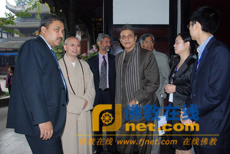 卡兰·辛格一行参观了三大士殿和大雄宝殿,瞻仰了千佛和平塔并饶塔而行。卡兰·辛格主席对文殊院的寺院建筑颇加赞叹。其间,他还在大雄宝殿释迦牟尼佛像前恭敬合十并布施供养,随行的印度驻华大使苏杰生等官员也一同瞻礼。