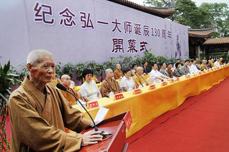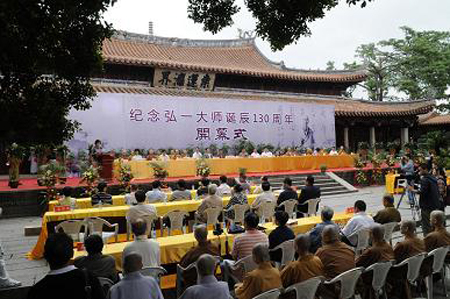 活动当天,来自全国各地的宗教界人士、文化界专家、弘一大师的亲属、《一轮明月》中弘一大师的扮演者濮存昕等宗教文化界人士齐聚古城泉州,以隆重的仪式追思、纪念这位中国近现代新文化运动时期的杰出艺术家和爱国高僧。