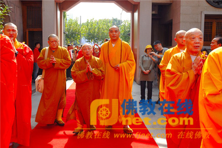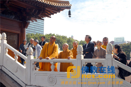 上海市佛教协会副会长、上海市静安寺住持慧明法师,及全体僧职人员、护法居士等近千人,热情迎接了传印长老一行。