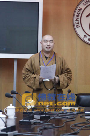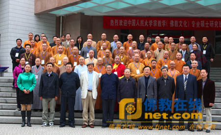 中国人民大学哲学院副院长魏德东副教授主持典礼,中国人民大学哲学院院长郝立新教授,北京大学宗教研究所所长楼宇烈教授,中国人民大学佛教与宗教学理论研究所所长方立天教授、执行所长张风雷教授、何建明教授;华东师范大学哲学系教授李向平教授,佛教在线安虎生总干事等出席了开学典礼。