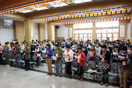 最后,第一期法海探源佛学初级班开幕式在大众齐唱三宝歌的歌声中圆满结束。