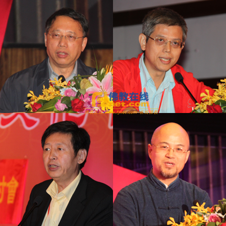 李明友教授(左上)、韩秉芳教授(右上)、黄征教授(左下)、海慧法师(右下)相继作了学术发言