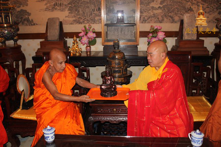 保定佛教转佛教在线北京讯 2010年10月8日下午5点,应中国佛教协会邀请访华的斯里兰卡阿斯羯利派大导师一行10人前来灵光寺参拜佛牙舍利。