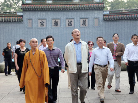 保定佛教转佛教在线浙江讯 2010年10月4日下午,全国政协副主席励无畏一行,在宁波市鄞州区政协主席唐军、宗教局副局长朱明霞等相关领导的陪同下到浙江宁波天童禅寺视察。