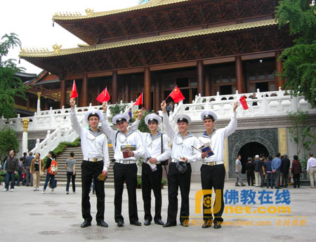 俄罗斯“希望号”帆船水兵们愉快的在静安寺合影