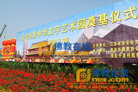 保定佛教转佛教在线江苏讯 2010年9月18日上午,景会寺暨中华文字艺术园在江苏省淮安经济开发区举行奠基仪式。中国文化信息协会常务秘书长冯乃华,中国国民党政策会副执行长洪秀柱,淮安市委常委、秘书长、常务副市长陈洪玉,淮安市委常委、宣传部长刘希平,淮安市人大常委会副主任李冰,淮安市政协副主席荀德麟、朱友冬等出席仪式,并分别为景会寺、中华文字艺术园开工奠基。