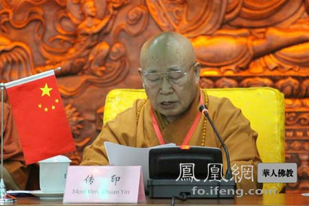 中国佛教协会会长传印长老代表中国佛教协会莅会祝贺(图片来源:凤凰网华人佛教)