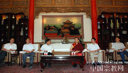 保定佛教转佛教在线北京讯 2010年9月10日,中央党校宗教工作专题研讨班学员先后走访了北京灵光寺、雍和宫等宗教活动场所。灵光寺方丈常藏法师、雍和宫住持胡雪峰喇嘛热情接待了研讨班一行。