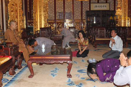 保定佛教转佛教在线北京讯 2010年9月15日上午,缅甸著名导演吴貌貌在缅甸驻华使馆人员的陪同下,到北京灵光寺参访。吴貌貌一行在灵光寺迎客厅拜望了灵光寺方丈常藏法师,随后参拜了佛牙舍利。