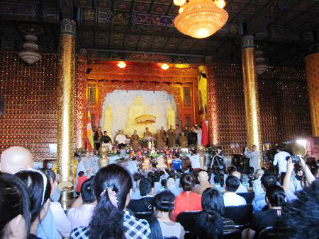 保定佛教转佛教在线辽宁讯 2010年9月12日下午,应辽宁省佛教协会副会长、北普陀寺方丈道极法师之邀,佛光山开山宗长星云大师再度到锦州北普陀寺参访,并以“智目行足”开示大众修行要“行解并重”。锦州市领导张庆民、义县副县长蒋立新、佛光山寺住持心培法师、国际佛光会世界总会秘书长慈容法师等与会,数千人聆听法要。