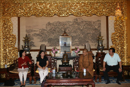 保定佛教转佛教在线北京讯 2010年9月14日上午,随同越南公安部部长访华的部长夫人,在越南驻华大使夫人的陪同下,到北京灵光寺参拜佛牙舍利。灵光寺方丈常藏法师在迎客厅接待了两位夫人,中国佛教协会国际部副主任王立陪同接待。