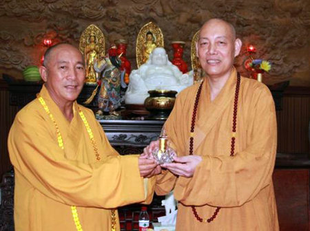 2010年6月,舟山市与灵鹫山签署文化交流合作协议,承诺世界宗教博物馆的观音展将要破冰巡回展到普陀山,为两岸观音信仰、文化艺术交流开启友好的实际互动;三个月后,心道法师则率众朝圣,慎重于普济寺举行为迎请毗卢观音之“供袈裟”仪式。当天,正逢普济寺供千僧大典,场面感人,两岸朝圣信众斋僧培福,也为这次的迎请朝圣奠定最好的缘起基础。