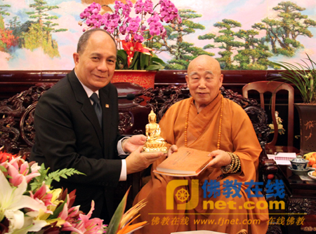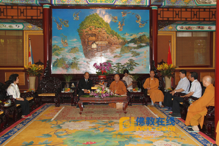 参加会见的有:中佛协副秘书长张琳、卢浔,中国佛教协会副秘书长、北京市广济寺方丈演觉法师,国际部主任普正法师,中佛协教务部主任宏度法师,国际部副主任李贺敏、王立等,国际部一课罗喻臻课长担任翻译。