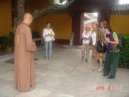 保定佛教转佛教在线河北讯 2010年8月31日上午,德国本笃修行中心参访团一行20人在柏林禅寺衣钵持顺法师的陪同下,到河北省邢台市玉泉禅寺参访,并拜访净慧长老,双方在五叶堂进行了亲切地交流。