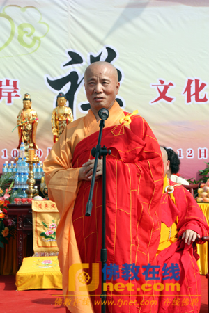 大连市佛教协会副会长、瓦房店市佛教协会会长、莲台山观海寺住持义辉法师在答谢词中对各级领导及海峡两岸诸山长老的到来表示衷心感谢。同时,义辉法师在致辞中回顾了观海寺的建立、发展的历史,回顾了中国佛教协会已故赵朴初会长为观海寺兴起名并亲题匾额的过程,及观海寺2005年在中佛协副会长净慧长老的见证下重建奠基。同时,他期望此次海峡两岸禅文化交流活动圆满成功。