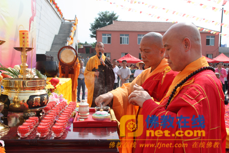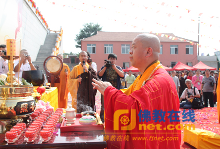 辽宁省佛教协会副秘书长、葫芦岛市佛教协会会长正定法师,大连市佛教协会副会长、瓦房店市佛教协会会长、莲台山观海寺住持义辉法师拈香主法
