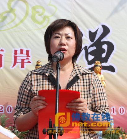 随后,大连市佛教协会副会长于今居士在开幕式上致辞,她对大连市、瓦房店市各级领导,及海峡两岸佛教界诸山长老的到来表示衷心感谢,并预祝活动圆满成功。