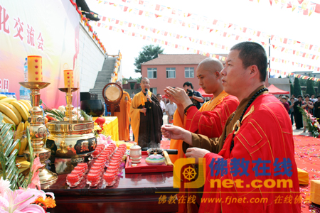 中国佛教协会副秘书长、北京市广济寺方丈演觉法师,台湾十方禅林方丈首愚法师拈香主法