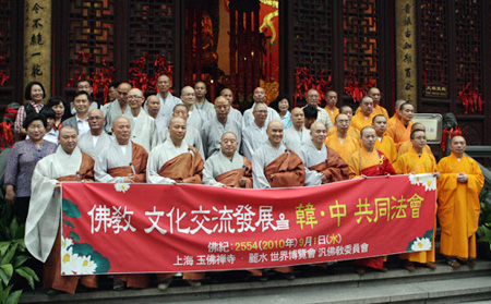 觉醒法师对韩国客人的到访表示欢迎,并向客人简要介绍了上海佛教和玉佛禅寺的情况,同时还介绍了上海佛教界围绕世博会所做的相关工作,希望通过双方的交流,加深相互之间的了解,共同为两国的友好交流做出贡献。
