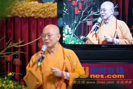 海涛法师为大陆佛教代表团成员导览、介绍生命电视台的演播室、录音间等