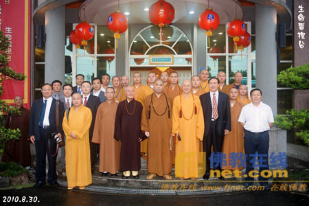 保定佛教转佛教在线讯 2010年8月31日下午4点许,由中国佛教协会副会长、陕西省西安市大慈恩寺增勤法师为团长,国家宗教事务局一司徐远杰司长为顾问的大陆佛教代表团一行,来到位於台湾宜兰县的生命电视台进行参观访问,受到了生命电视台台长海涛法师的热情接待。