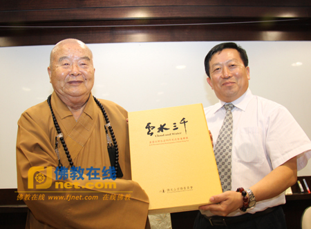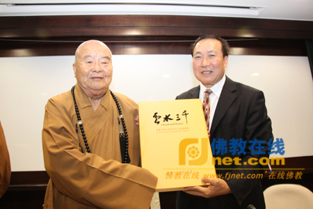 徐远杰司长代表国家宗教事务局王作安局长向星云大师问安并敬赠礼物