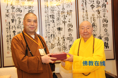 惟觉长老向净耀法师致赠纪念品