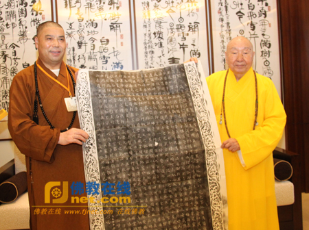 增勤法师以西安大慈恩寺大唐三藏的圣教之序及圣教序记两幅拓印赠予惟觉长老