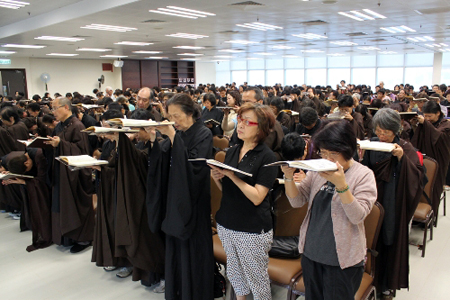 听闻香港佛光道场为罹难者举办法会的讯息后,不少港人前往参加法会,28日超过1200位民众与信众涌进道场的十五楼大雄宝殿及十六楼的大斋堂。主法者慧诚法师的梵呗摄心感人,当诵至“启告十方……”时,大众无不深被摄受,感动落泪,希望此次罹难者,能莅临坛场听闻佛法,远离恐怖而往生极乐净土。