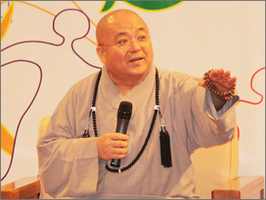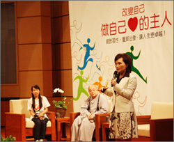 保定佛教资讯 转讯:由法鼓山世界青年会所举办的2010年“青年卓越营”,于2010年8月14日上午9点在法鼓山世界佛教教育园区国际会议厅,邀请法鼓山方丈果东法师与中视资深主播沈春华,以“改变自己”为主题座谈对话,与在场两百多位青年朋友们分享自身的人生经验。