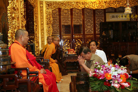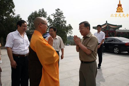 2010年8月23日上午10点,泰国国防部第二部长和泰国驻华大使馆武官处的相关人员到北京灵光寺参拜,受到灵光寺方丈常藏法师的热情接待。