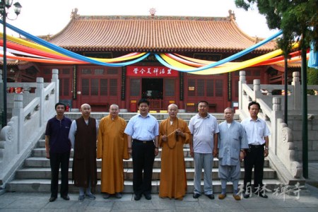 信息来自佛教在线 2010年7月20日下午,中国佛教协会秘书长王健,中国佛教协会教务部主任宏度法师、副主任长顺法师到河北省赵县柏林禅寺视察,受到该寺方丈明海法师的热情接待。