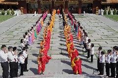 在西来鼓乐团以气势磅礴的“秦王点兵”揭开序幕后,西来小学小朋友以手语表演了“师父颂”、“佛祖保佑您”等节目,精湛演出获得满堂彩。表演节目后,协会干部代表们与西来童军团供养法师,表达信众对僧宝敬意。