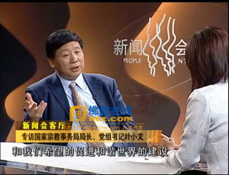 近日。国家宗教事务局叶小文局长就第二届世界佛教论坛等接受了CCTV《新闻会客厅》专访,内容如下: