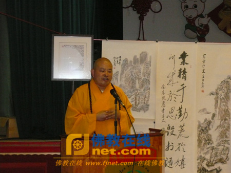 本次“传义大和尚书画作品法国展”由法国潮州会馆、《中国佛教艺术》主办。据潮州会馆执行会长吴武华介绍,传义法师是应潮州会馆邀请前来主持农历七月十五中元节法会的,同时他携带自己最近创作的书法作品20件,写意山水20幅,进行义展。在这些作品当中,书法作品有隶书、行书;画作则多为表现佛家空灵圣镜的六尺或四尺整张。在开展的第一天,多幅书法作品就被法国等欧洲艺术家预定收藏。