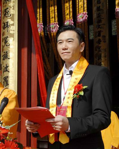 10月25日,香港著名影视歌三栖明星温兆伦现身浙江奉化蟠龙寺,为大雄宝殿佛像开光庆典做主持,引起现场一片骚乱。