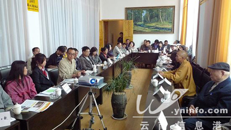 保定佛教资讯网讯:2010年4月20日下午2点,“南诏画院佛教文化艺术研讨会”在云南省大理州兰林阁酒店举行。大理法真寺住持传证法师、中国书画艺术研究院名誉院长马玉魁、中国当代著名艺术家孙国娟、云南书画院研究员徐渤君、云南民族画院副院长马晓鸿,及昆明佛学研究会常务理事、副秘书长郑千山等云南佛教界和文化艺术界人士出席了研讨会。