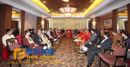 保定佛教资讯网讯:2010年4月21日上午11点半,中国佛教协会会长传印长老在国宾酒店会见了出席“第十三次中韩日佛教友好交流大会预备会议”的各国代表团成员和与会嘉宾。