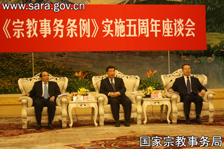 中央统战部、国家宗教事务局、国务院法制办在人民大会堂召开《宗教事务条例》实施五周年座谈会