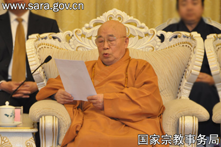 中国佛教协会会长传印法师在座谈会上发言