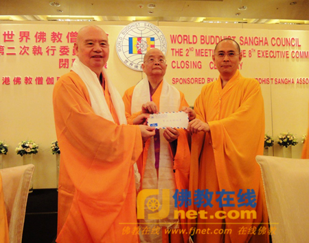 保定佛教资讯网资讯:2010年3月15日上午10点30分,世界佛教僧伽会第八届第二次执行委员会闭幕典礼在香港隆重举行,香港佛教僧伽会会长绍根长老担任主席,世界佛教僧伽会会长了中长老,世界佛教僧伽会副会长净良长老、今能长老、义玄长老、藏慧法师等担任主席团成员。