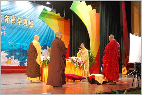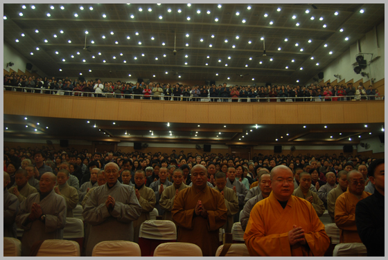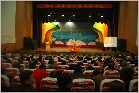 2009年11月7日 ,由秦皇岛市佛教协会主办,水岩寺、法云寺、净土寺、椒园寺、五泉寺、庆福寺、望海禅寺承办的秦皇岛“第四届正觉之音佛学讲座“在市工人文化宫隆重开幕。秦皇岛市佛教协会成立于2005年,本着“启迪正智 引导正信”的宗旨,连续举办了三届“正觉之音佛学讲座”,首开河北省大型弘法讲座之先河,数以千计的信众听经闻法,共沾法雨. |