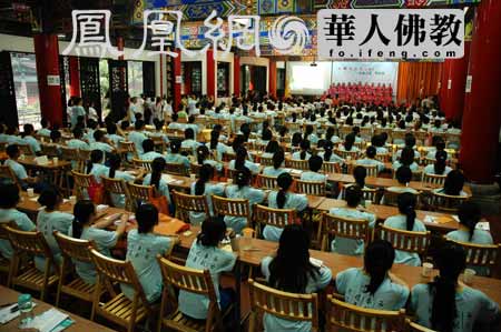 与往届禅修营不同的是,这届夏令营文殊院还迎接了数十位特殊的营员,他们是来自地震重灾区什邡、绵竹、彭州的学员,主要是高中毕业生。这些营员是由一直在灾区服务的志愿者组织关爱社工发展联盟推荐介绍的,成都文殊院对这些学员免收一切费用,并赠送服装及学习用品。