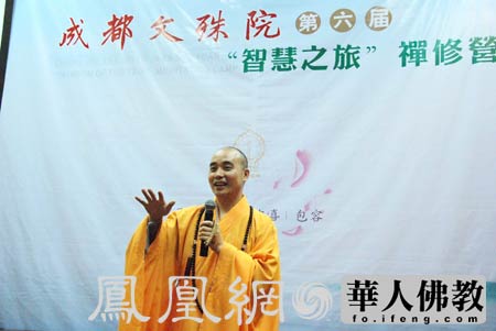 此次禅修营是四川5·12大地震周年祭之后成都文殊院举办的第一届禅修营。自去年5月四川发生大地震后,成都文殊院一直在灾区一线参与救灾,他们几乎跑遍了所有灾区寺庙,募集食物、药品、物资等,并将数十万元善款送到受灾寺院和灾民手中。他们发挥自身优势,先后举办多次地震灾区超度祈福法会,举行面向宗教界和全社会的赈灾募捐活动,不遗余力地加大心理关怀的力度,举办第五届禅修营、第五届寺院生活体验营、第六届寺院生活体验营和本次第六届禅修营,以此呵护四川人民受伤的心灵,用佛陀的智慧帮助人们解开生命的困惑与迷惘,提升生命的质量。