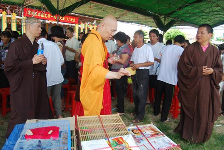 佛教在线广东讯 2009年6月6日至13日,江西省东林寺代住持大安法师率领东林寺弘法团到广东省普宁、陆丰、惠州、江门四地弘法。弘法内容包括举行佛法讲座、启建放生法会、与当地法师进行座谈等,并在惠州举行了“净土之光”诗歌音乐法会。弘法团所到之处得到了当地信众的热烈欢迎和一致好评。