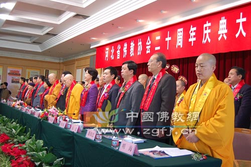 中国佛教新闻网讯 2008年11月28日上午,河北省佛教协会成立20周年庆典大会在石家庄市汇宾大酒店举行。中央统战部二局宗教工作处处长褚有奇,国家宗教事务局一司副司长刘威,中国佛教协会会长一诚长老,中国佛教协会副秘书长蘧俊忠,中国佛教协会国际部副主任普正法师,河北省委统战部部长刘永瑞,中国佛教协会副会长、河北省佛教协会会长净慧长老,河北省佛教协会常务副会长明海大和尚等相关领导及国内佛教界大德高僧与居士参加了会议。