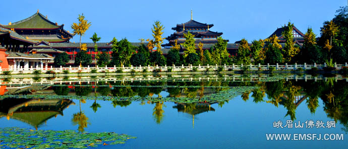 评语:俯视大佛禅院全景,秀丽的峨眉仙山与辉煌的大佛禅院融为一体,展示了大佛禅院的雄伟庄严和仙山峨眉的秀丽妩媚。该图构图完美,用光考究,色彩丰富,实为佳作。