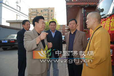 截至目前,省佛协共收到新棉被2000条,并于10月27日统一送往四川灾区。预计次日下午到达。车辆出发前, 省委统战部副部长刘青、省民宗厅副厅长张兴堂、省佛教协会常务副会长明海大和尚、省佛协秘书长肖占军及相关领导亲自到现场察看赈灾物品装载情况并送行。