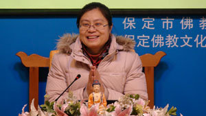 2011年2月13日星期日上午九点,大慈阁“莲池讲坛”由陈松鹤博士继续为大众汇报《大乘无量寿经研习报告》第五十五。